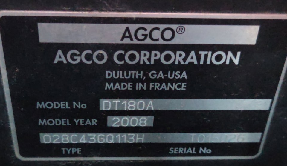 2008 AGCO DT180A, 3706 Hours, MFWD, CVT Transmission, Suspended Front Axle, Front Nose & Chin Weights, Rear Wheel Weights, Suspended Cab, (4) Rear Hydraulic Remotes, 540/1000 RPM PTO, 420/85R34 Front Radial Tires, 480/80R50 Rear Radial Duals