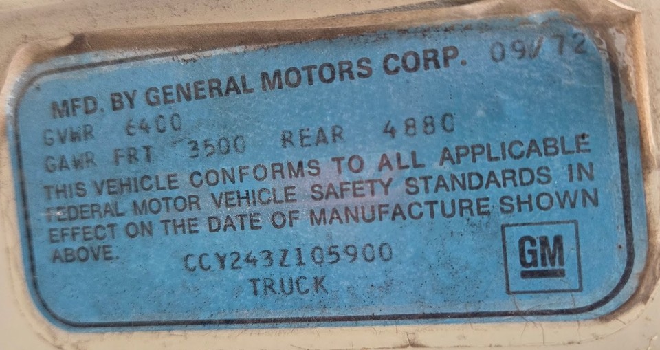 1973 Chevrolet C20, 2WD, 64221 Miles, 350 V8, Automatic, Air Conditioning, 8’ Bed